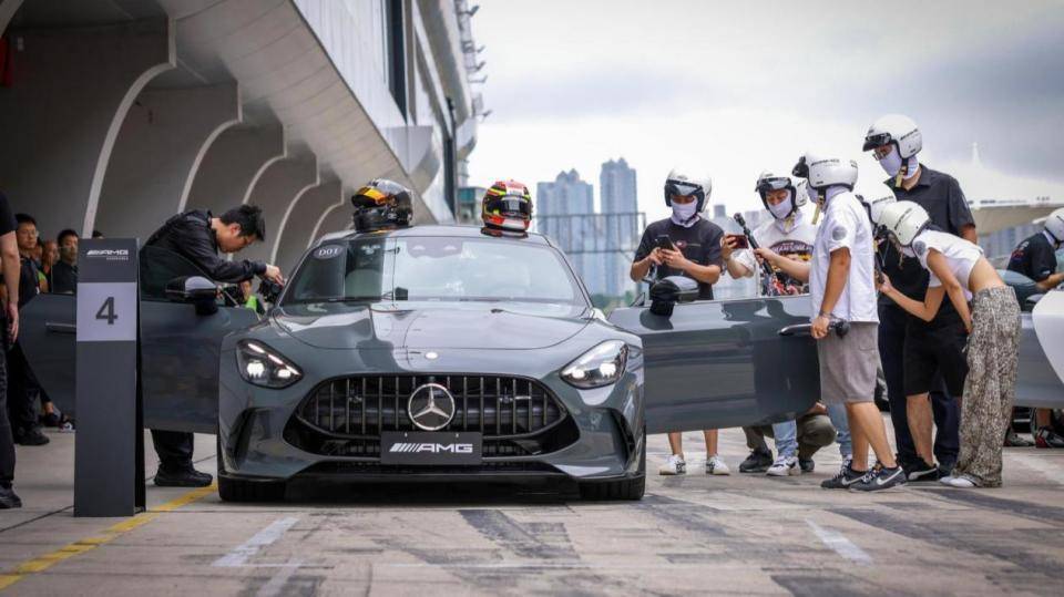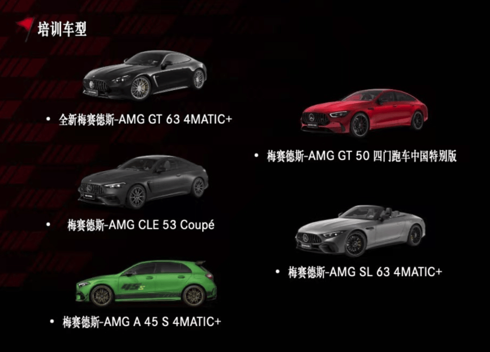 所以這個對于學員來說買到就賺到的名額到底能收獲什么呢?首先每一年或每一期,甚至是每一項獨立的體驗科目所駕駛的車型都會不一樣,一般都會是AMG的當季新品,比如今年的重點體驗車型就是AMG GT 63 S E PERFORMANCE和AMG SL 63,至于AMG CLE 53和AMG GT 50四門版,以及AMG A45 S,甚至是G63都會在個別科目上體驗到,但基本都是一些簡單的繞樁,急停,零百加速,甚至做個接駁車,是的,你沒聽錯,價值300萬的G63在這個活動上“只配”做個接駁車。