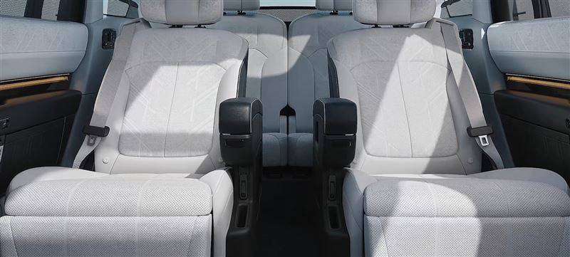 尺寸方面,極氪9X的車身三圍分別為:5239/2029/1819mm,軸距3169mm,采用2+2+2六座布局,定位中大型豪華旗艦SUV。為了讓用戶感受到尊崇舒適的乘坐體驗,其在第二排配備了雙零重力座椅,電動調節/加熱/通風/按摩/一鍵調節等功能一應俱全,還同時配備頭枕揚聲器。同樣,為了保障最后排乘客的乘車體驗,第三排座椅預計也具備靠背角度電動調節功能。為了彰顯內飾的豪華檔次,極氪9X在座艙采用了大面積軟包材質和真皮進行包覆,座椅全部使用打孔皮質包裹,這是頂級豪車才擁有的禮遇。同樣,車尾獨特的“天地尾門”,也是頂奢SUV的配置。