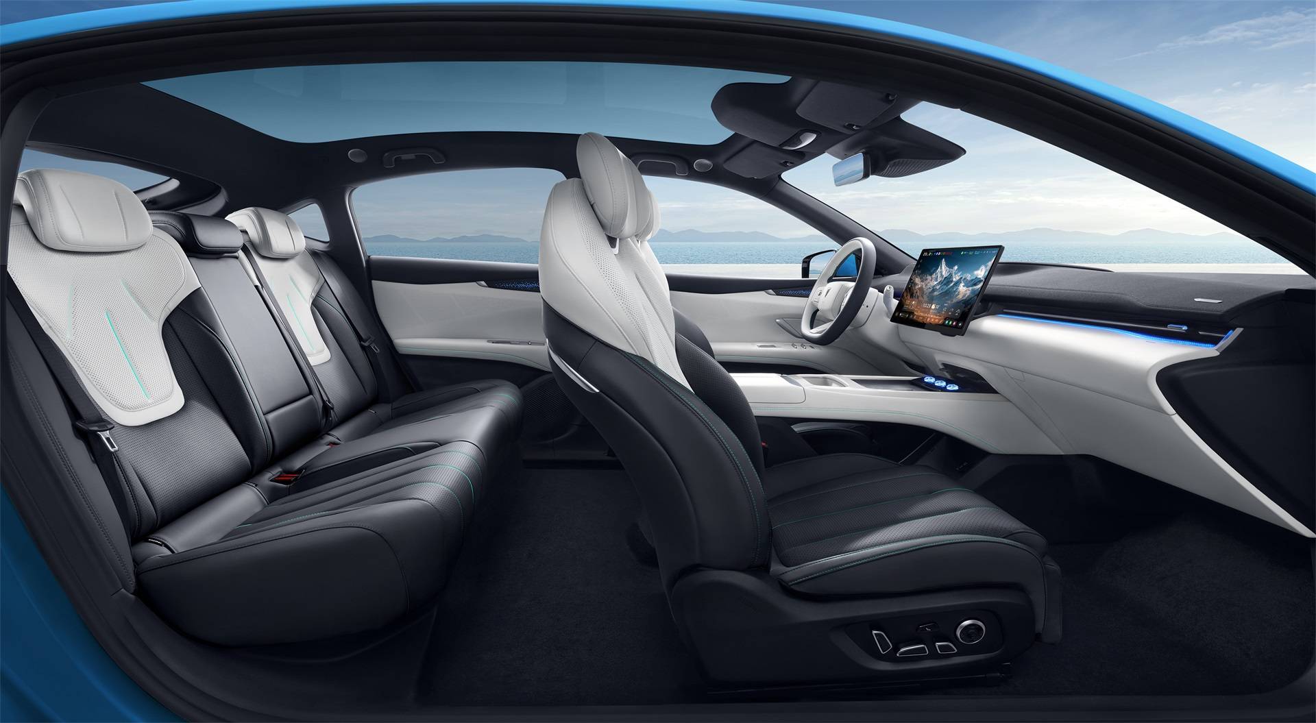 坐進深藍L07的瞬間,你會忘記這是臺15萬級的車。零重力座椅自帶8點按摩和通風(fēng)加熱,開長途時啟動"舒享模式",座椅自動調(diào)整到120°躺角,香氛系統(tǒng)釋放"星辰藍"香氣,配合20個揚聲器的杜比全景聲,簡直是把SPA館搬進了車里。